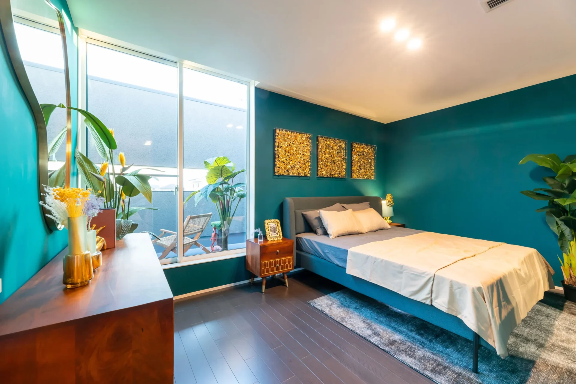癒やしをもたらすグリーンカラーは、ユニークなインテリアと調和して高級感を高めます。