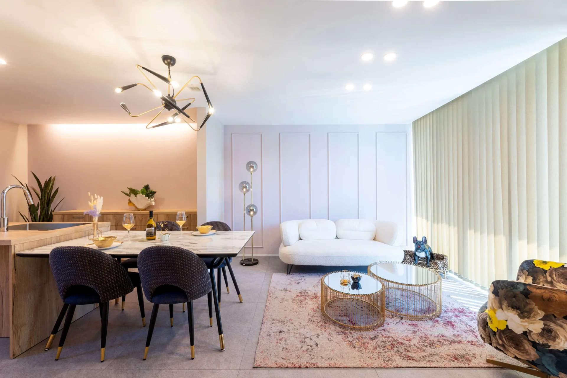家具をより引き立てる、つくり込まれたモールディングや照明デザイン。